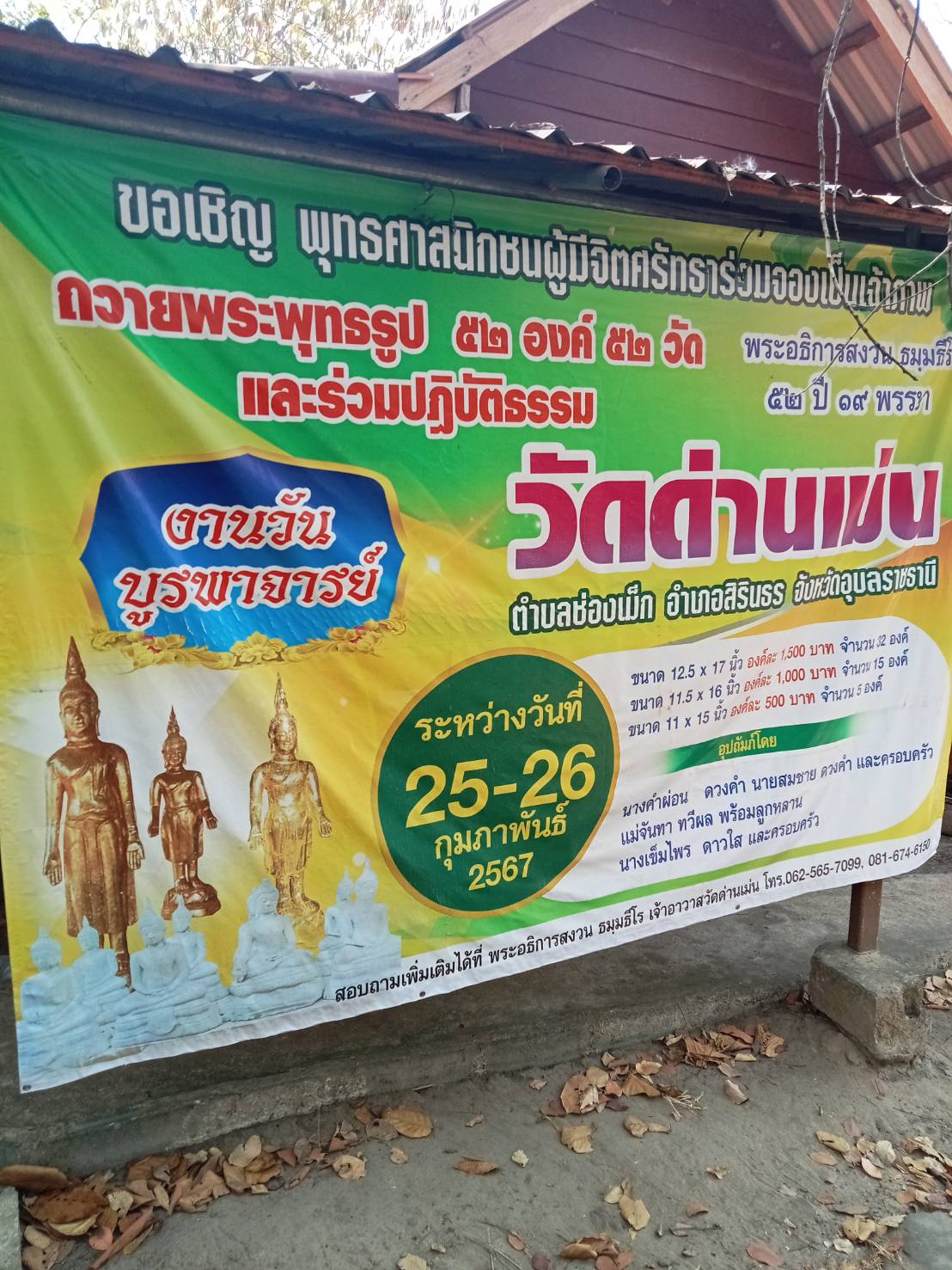 • วัดด่านเม่น เลขที่ 232 หมู่ 10 ตำบลช่องเม็ก อำเภอสิริธร จังหวัดอุบลราชธานี 34350